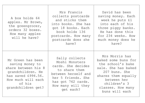 The key word for this section is array. To start creating your sheet, choose an option from the number values box below. Number and place value addition subtraction multiplication division four operations fractions money measurement time geometry (shape) statistics (handling data) reasoning/problem solving weekly programme year 2 assessment Interesting multiplying integers word problems. 3 x 0.7, 3.5 ÷ 5;